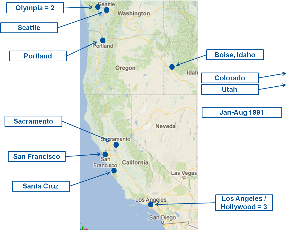 Nirvana in the U.S. 1991 – Maps
