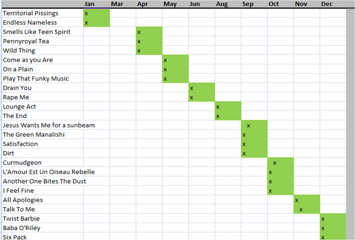 Nirvana Live Stats 1987-1994