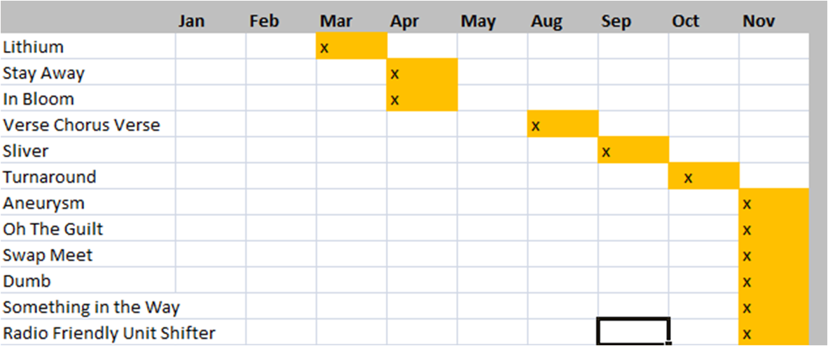 Nirvana Live Stats 1987-1994