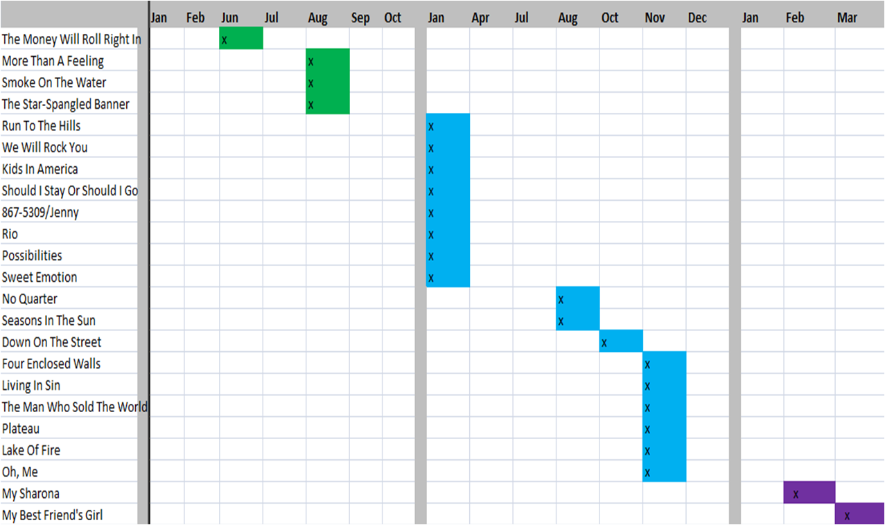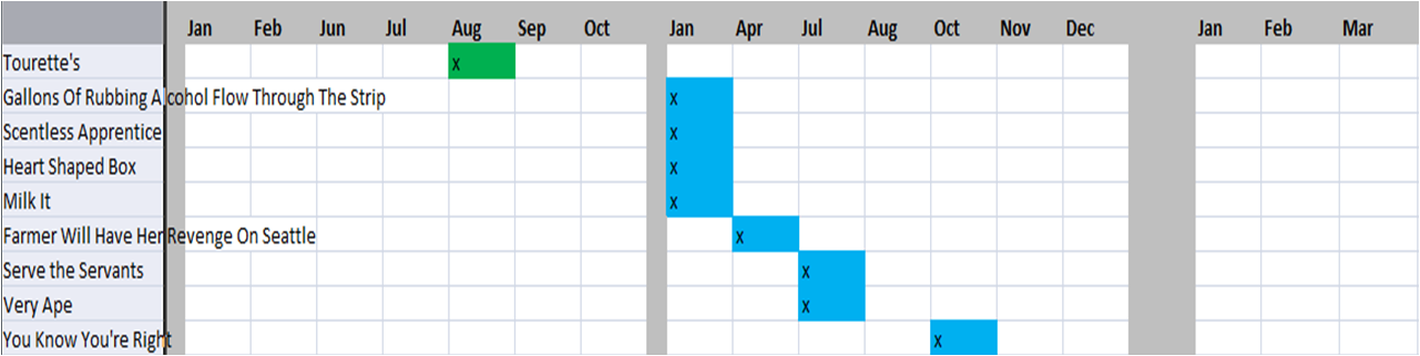 Another way of looking at it is to examine how many new songs or covers Nirvana knocked out in how many shows: