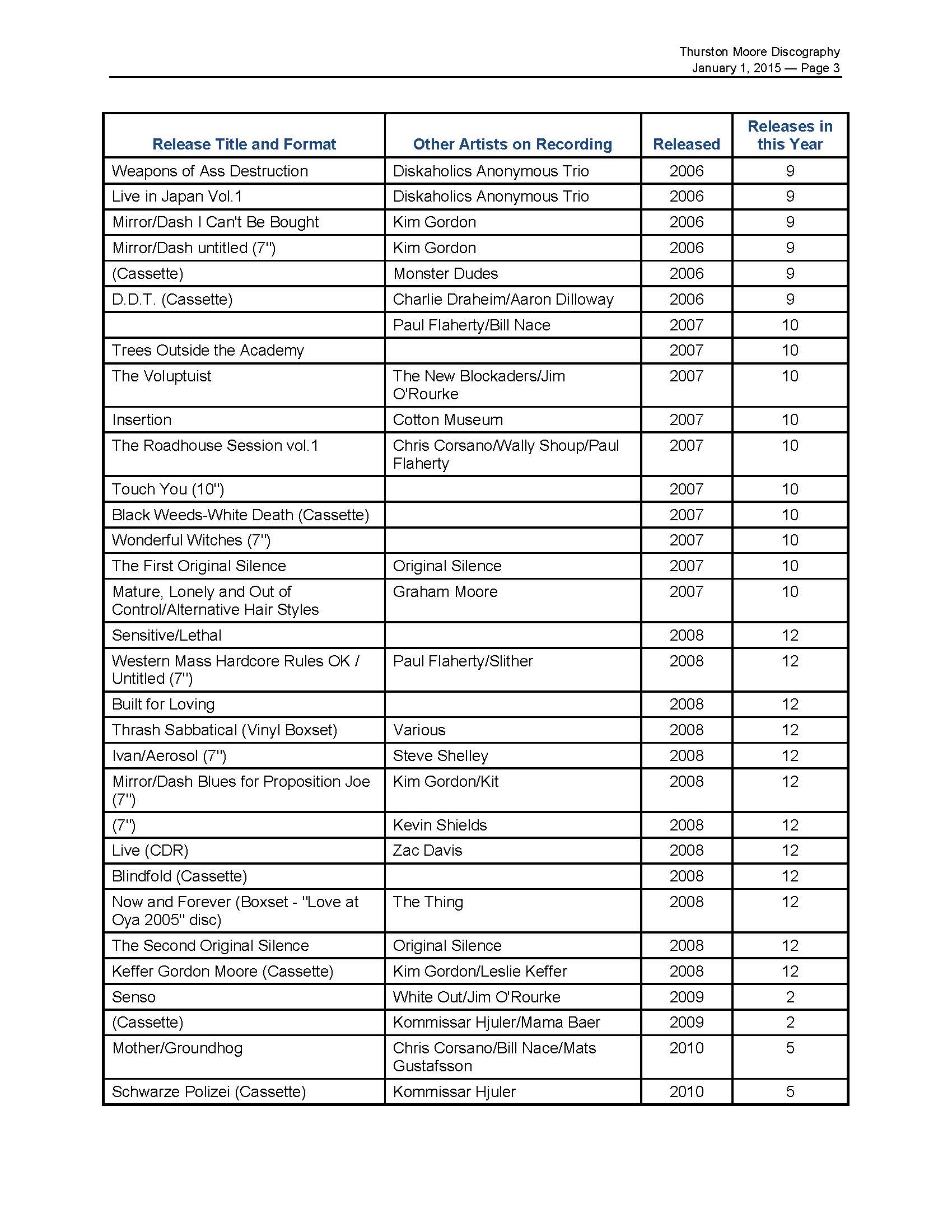 For those completists among you (and anyone who can tell me what I’ve missed! Message me on NirvanaDarkSlivers@gmail.com – I’d welcome the updates!) here’s the complete table of 127 releases in the Thurston Moore solo discography.