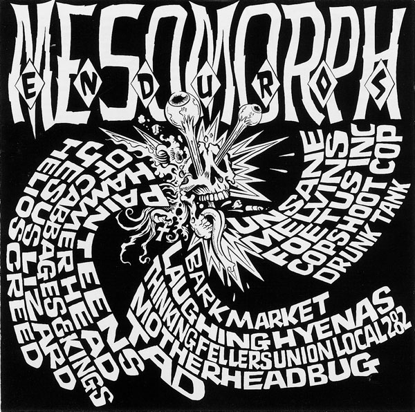 My favourite record shop really came through this week when I found a copy of an item that’s been of interest to me for quite a few years now; the Mesomorph Enduros compilation from 1992. Why of such interest? Well, take a look at this shot of the back cover of my copy – spot it?