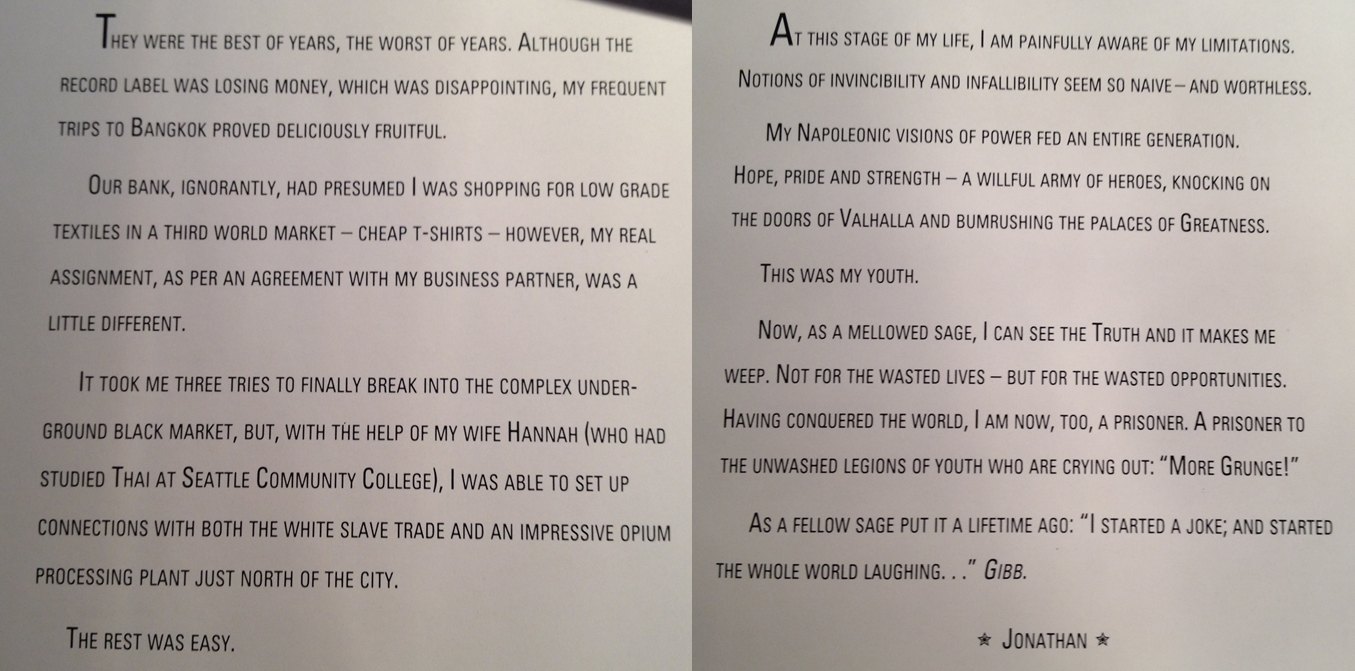 Departed this realm about five weeks ago to go get moving on various other activities so rather a lengthy absence from the blog this past month. I can’t for the life of me remember whether I shared this piece – “No Seattle” was chosen as the album of the month for Seattle’s City Arts magazine. Pleasing once again to see different songs plucked from the release – this time Chemistry Set’s “Fields” and Hitting Birth’s “Same 18” – as highlights. Ah, diversity…Such a pleasure.