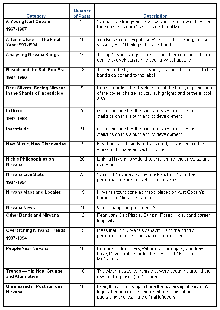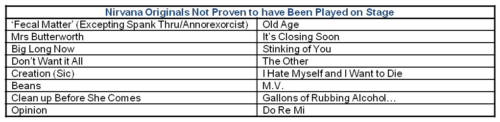 Certainly the treatment described in the Journals differs from the final result; why would be a matter of speculation but it certainly avoids some royalty problems by not dipping back beyond the Grohl years (i.e., not using the Rhino Records in-store footage with Jason Everman and Chad Channing) and not featuring other musicians and their songs (the desire to have Molly’s Lips performed with Eugene Kelly of The Vaselines from Reading).