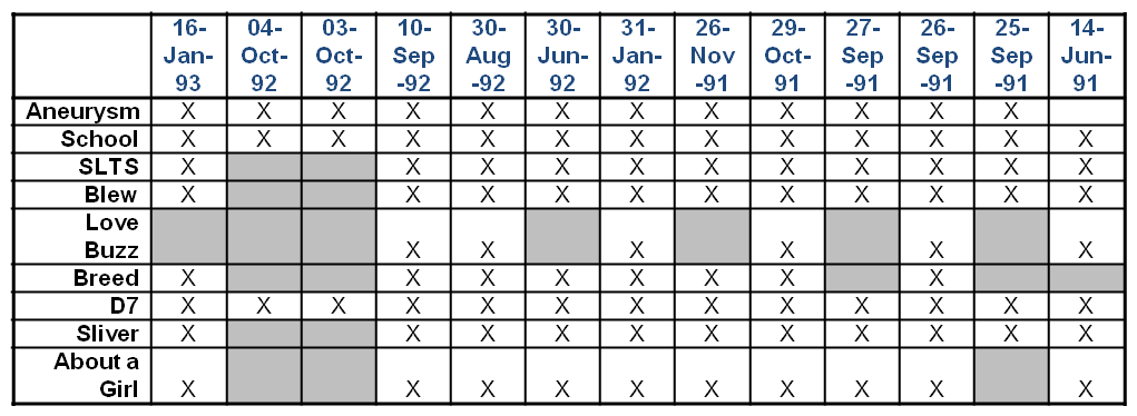 Yet Axl Rose represents something else within the Nirvana story; the way out. Axl Rose’s willingness to ignore the wishes, hopes and desires of all other individuals made him supremely able when it came to building a life outside of the spotlight. His sobriety, compared to the persistent drunkenness or drug issues of his band members, made him the only able to play dictator. Kurt, by contrast, was dictator of Nirvana yet increasingly was unable to steer the ship. Both men increasingly rejected contact with the press if they couldn’t control the nature of the dialogue, similarly time in the studio became a scarce commodity for each band; Kurt barely showed up for band sessions after Nevermind, Axl meanwhile did much of his work for Use Your Illusion separate to the band, then didn’t even appear in studio alongside them for the recording of The Spaghetti Incident? album. A significant area of contrast, at first glance, would be the difference between Nirvana’s relative retreat from live performance versus Guns n’ Roses embarking on mammoth world touring throughout 1992-1993. Yet looking a little further back, Guns n’ Roses gave only 21 concerts in 1989-1990, a wonderfully comparable situation to the 21 shows Nirvana managed between March 1992 until October 1993.