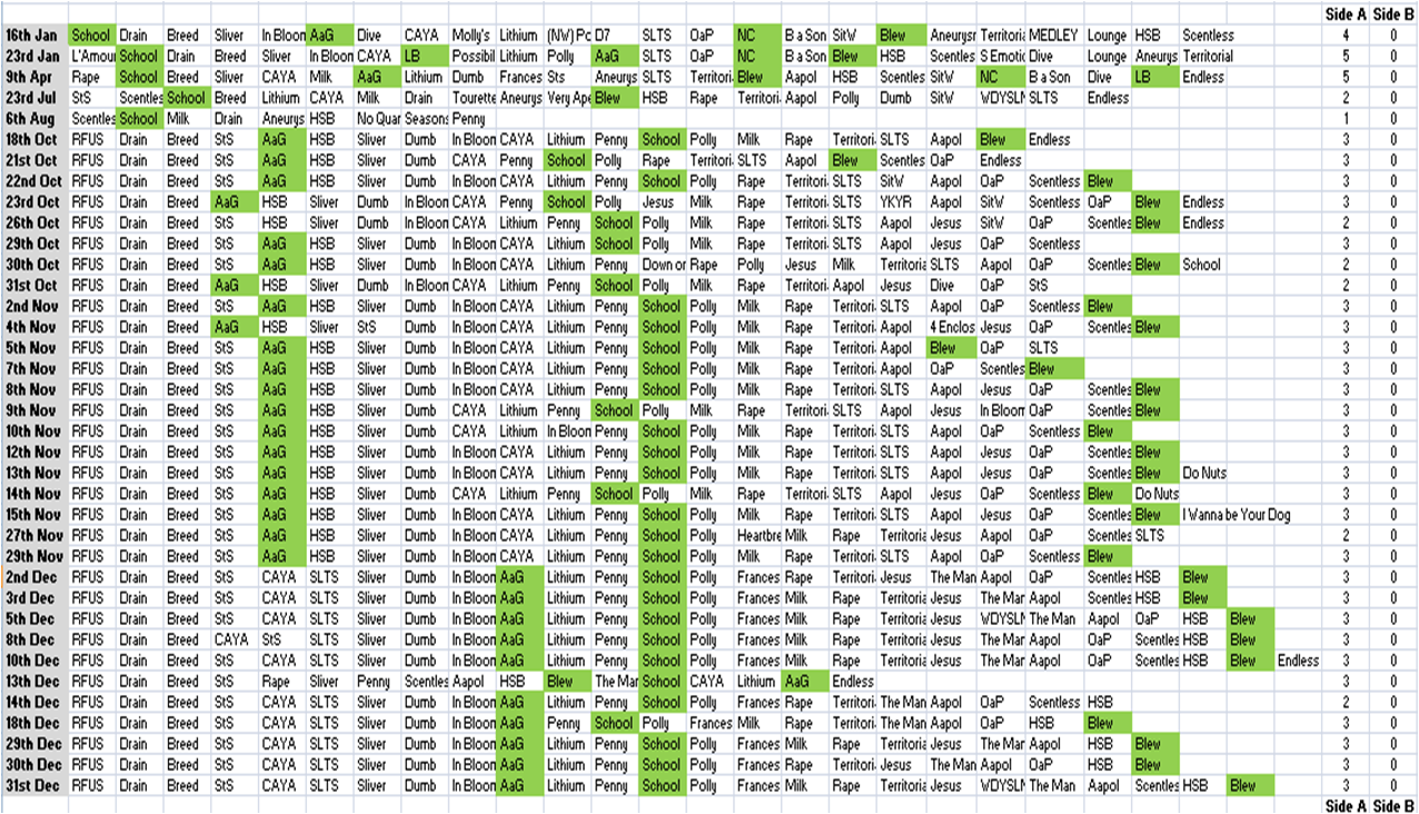An element that made me hopeful was a brief statement about how his jams with Courtney were leading to good songs…Oh boy…Don’t get my hopes up by making me think there really is a lot more to come than “Stinking of You.” Barring that…It just left me despondent sitting through a soap opera vision of the life of a significant musical artist, one in which music has been erased or lowered to the status of minor background noise…